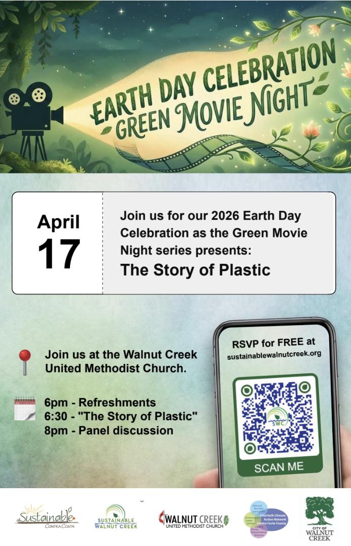 Sustainable Walnut Creek, in collaboration with the City of Walnut Creek, is hosting an Earth Day Celebration & Green Movie Night on April 17 from 6-9 p.m.